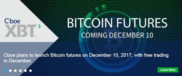 芝加哥期权交易所(CBOE)宣布比特币期货12月10日上市交易