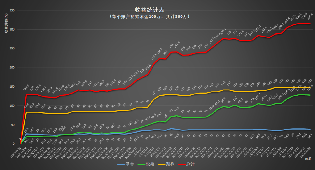 期权目前共计盈利148万,要珍惜年初的大幅波动了