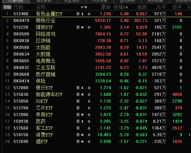 有色涨幅第一、白酒跌幅第一