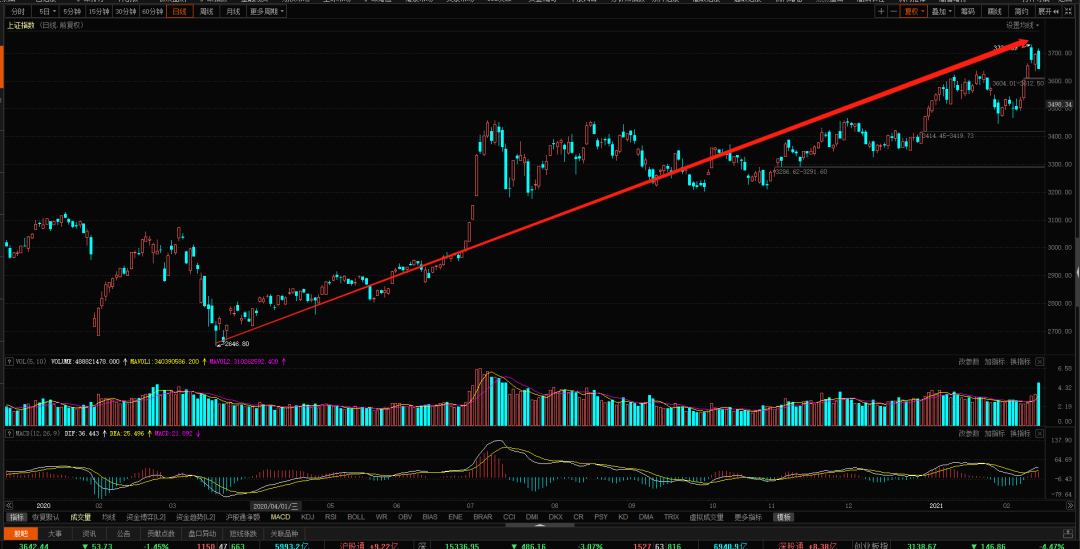 自20年3月份的2646点以来,上证综指一直保持着日线上涨趋势