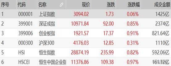 早盘复盘:港A两市主要股指全线上涨,多只科技股股价创新高