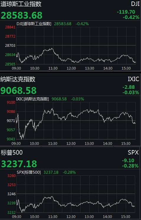 美三大股指全线收跌:道指跌近120点 蔚来暴跌近12%