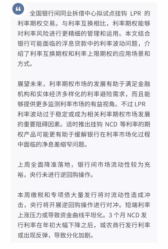 即将推出的利率期权及其应用—货币市场与流动性周度观察2020年第2期
