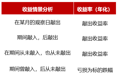 雪球期权结合了敲入与敲出期权,其挂钩标的通常为股票或股指合约,其特点为只要挂钩标的资产价格不发生大跌,持有期限越长获利就越高。雪球期权的收益情况与标的价格波动情况有关: