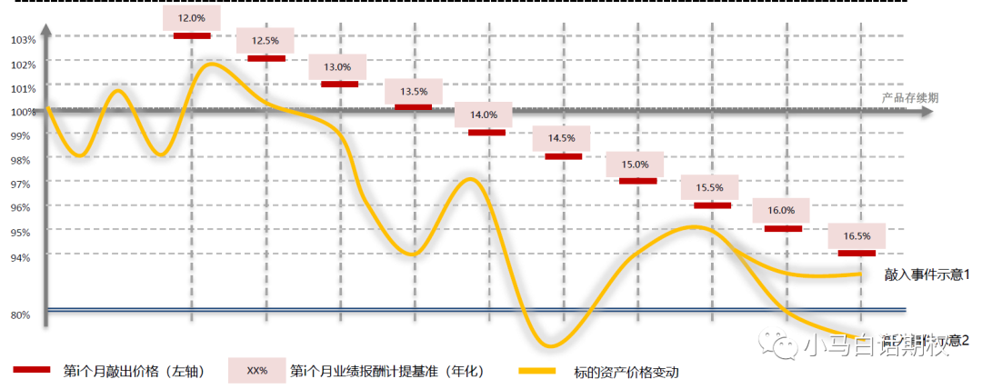 而如果下跌,只要在观察日标的能反弹到接近于初始价格的点位,就能获取固定收益,每个月大于1%.