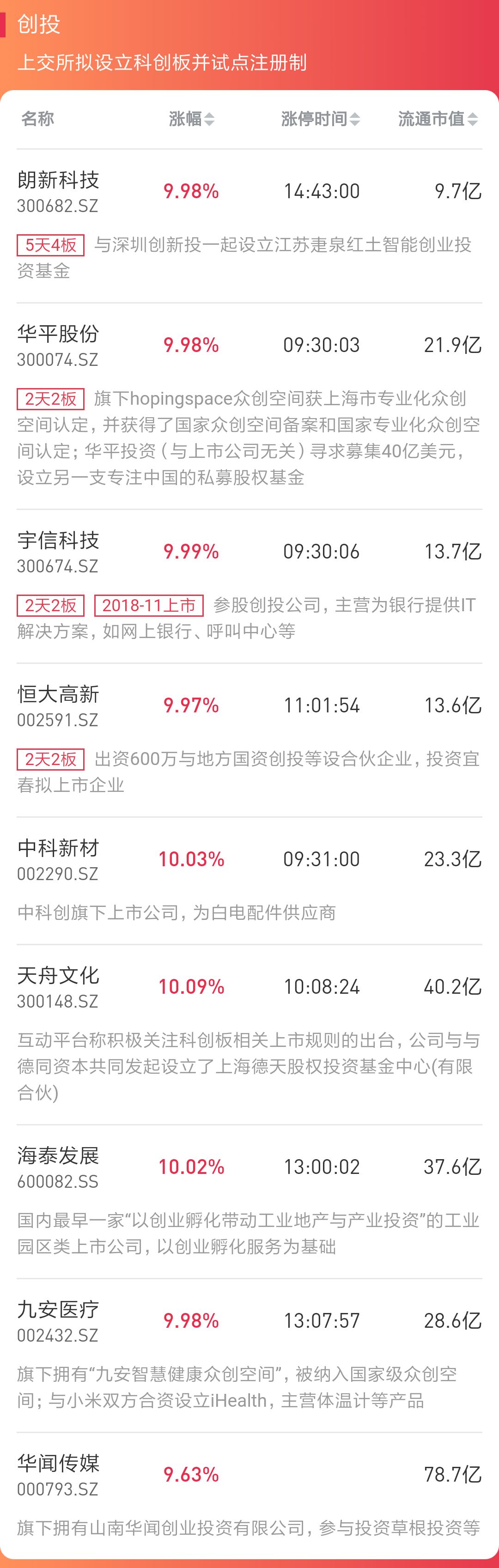创投板块炒作开始延伸至参股独角兽的板块炒作。新华传媒参股深兰科技、上海新阳参股上海新昇,佐力药业参股科济生物,与此同时,经历昨日的大幅调整,创投板块同时也有多股呈现强势态势。